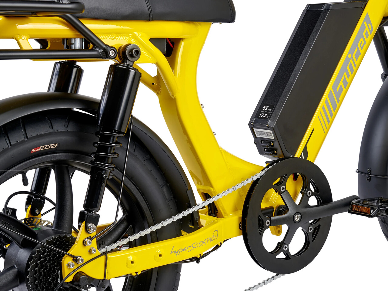 Der Juiced Bikes HyperScorpion Express ist ein hochwertiges Elektrisches Lastenmofa des E-Bike-Herstellers Juiced Bikes aus Kalifornien, USA. Das Unternehmen wurde 2009 von dem fünffachen amerikanischen Meister und Olympischen Hochspringer von 2004 Tora Harris gegründet, der an der Princeton University einen Abschluss in Maschinenbau und Luft- und Raumfahrttechnik erworben hat.