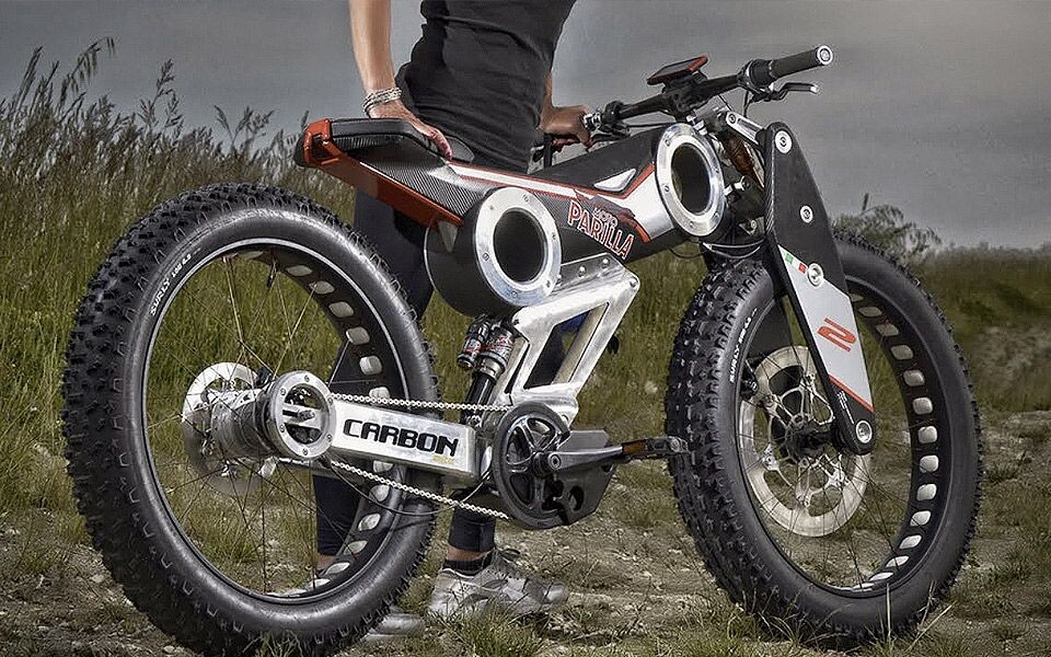 Der Moto Parilla Carbon Mimetica ist ein innovatives E-Bike/Mofa-Hybrid von der italienischen Marke Moto Parilla. Die Marke blickt auf eine Geschichte bis 1912 zurรผck und war einst eine beliebte Motorrad- und Rollermarke in den USA (motoparilla.org).
