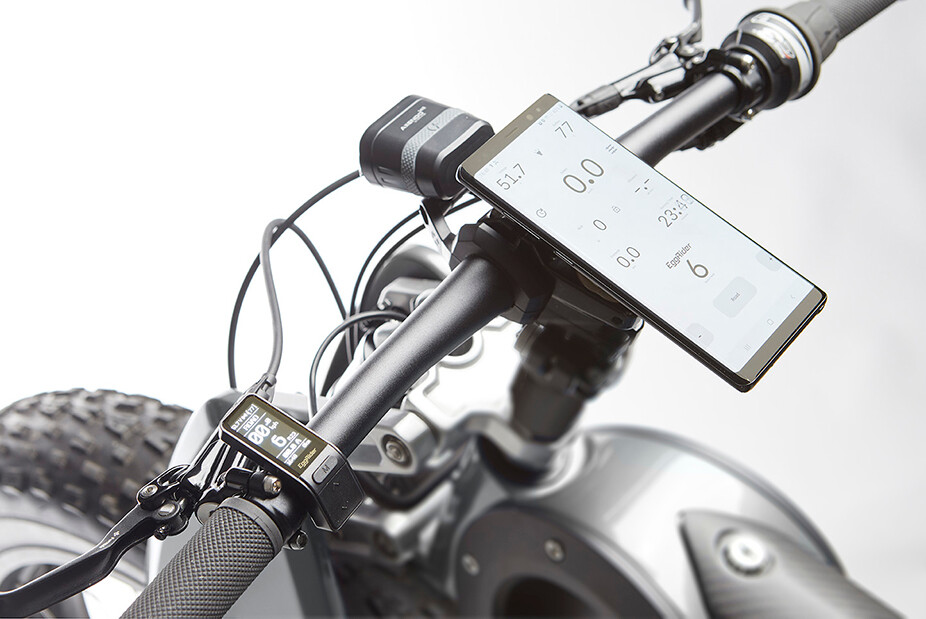 Das Mofa verfรผgt รผber einen abnehmbaren Lithium-Akku mit einer Reichweite von 80 km.