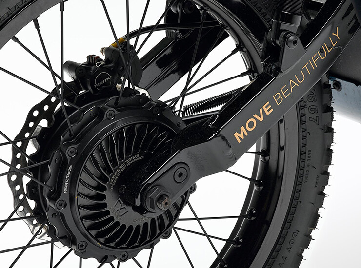 Das Moped verfügt über zwei 2.000 Watt Elektromotoren (2.000 Watt insgesamt) mit einer Höchstgeschwindigkeit von 50 km/h. Die Motoren liefern 184 Nm Drehmoment.